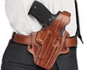 The F.L.E.T.C.H. high ride leather handgun holster, one of Galco's most popular pistol holsters, is constructed of premium saddle leather that provides a hand-molded fit.